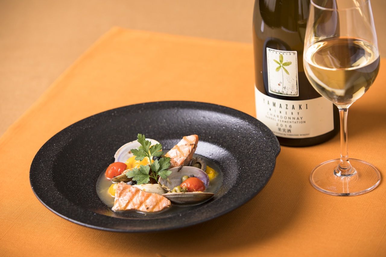 【鮭のアクアパッツァ×山崎ワイナリー シャルドネ】