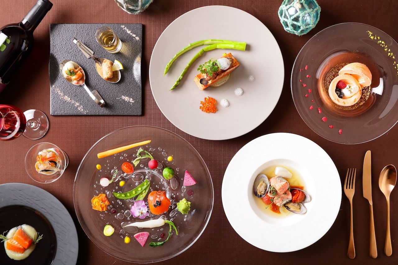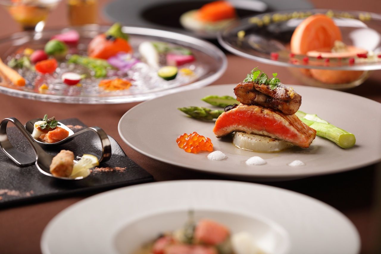 鮭のさまざまな部位を使ったコース料理です。鮭の鼻先から背や腹まで、それぞれを「焼く」「煮る」「揚げる」「凍らす」「燻す」という5つの調理法を用いて提供します。今年は、料理の楽しみの幅が広がるよう、味の深みや口当たりに合わせた料理とアルコールのマリアージュを提案します。