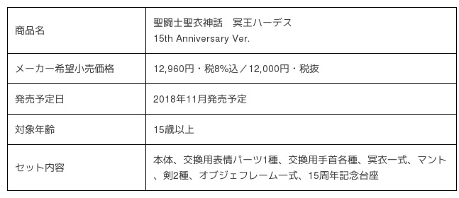 『聖闘士聖衣神話 15th Anniversary Ver.』商品概要