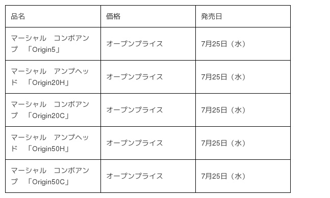 株式会社ヤマハミュージックジャパン(本社:東京都港区、代表取締役社長:押木正人)は、当社取り扱いのギターアンプ・ブランド「マーシャル」の新製品「Originシリーズ」5機種を2018年7月25日(水)に発売します。