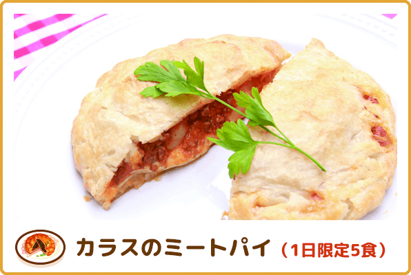 カラス肉とホクホクのじゃがいもを詰め込んだミートパイ。