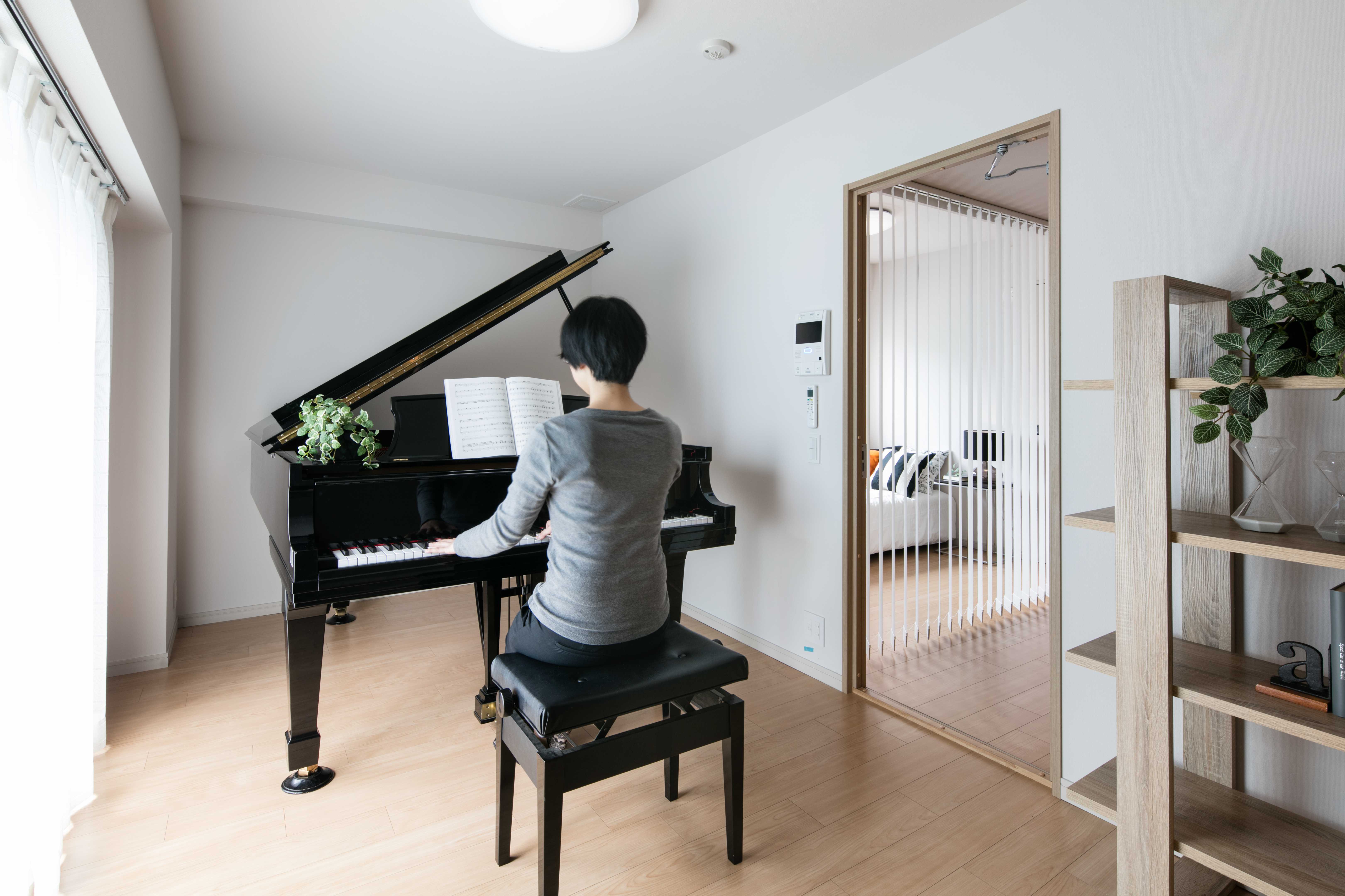 「ミュージション」は、「全戸遮音構造」の「好きな時に好きなだけ音楽に触れていたい方」に向けた賃貸音楽マンションです。風通しなど住環境の快適性を損なわないままに、遮音性能を高め音響効果の高い構造を採用しています。外部のスタジオではできない、自宅だからこそできる音楽漬けの日々をお過ごしいただけます。ピアノはもちろんのこと、コントラバスなどの大型楽器も24時間演奏可能となりました(※1)。