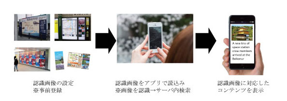 株式会社デンソーアイティーラボラトリ(本社:東京都渋谷区、代表取締役:平林 裕司)が開発した高精度・高速画像コンテンツ検索技術。ポスターやパンフレットなど、事前に登録した画像をスマートフォンのカメラで認識させると、その画像に対応したコンテンツに誘導することが可能になります。